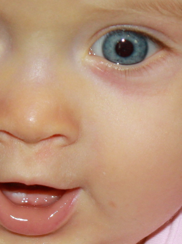 Two weeks ago Magdalena sprouted her first tooth. It's a bottom tooth - aka a lower central incisor for all our dentist readers. It's very jagged and has a sharp little point. (click on the image below and/or scroll a little further down for a closer look at her pearly white.)
